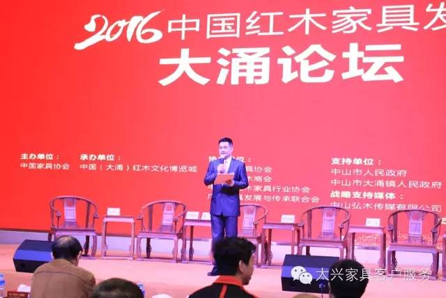 3月14日,2016中国(中山)红木家具发展大涌论坛在中国(大涌)红木文化博览城隆重举行。太兴家具董事长李兴畅作为特邀嘉宾出席论坛,并就“互联网+”时代的红木家具营销创新”主题进行研究讨论。