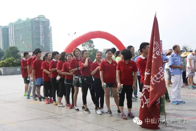 在大涌镇党委书记郭丛枢发动了起步后,参与活动的各个方队迅速出发,沿规定路线向终点奔去。大家井然有序的在队伍中或慢跑,或行走,享受着运动的乐趣和流汗的快感,太兴家具火红的厂服在队伍中十分耀眼。