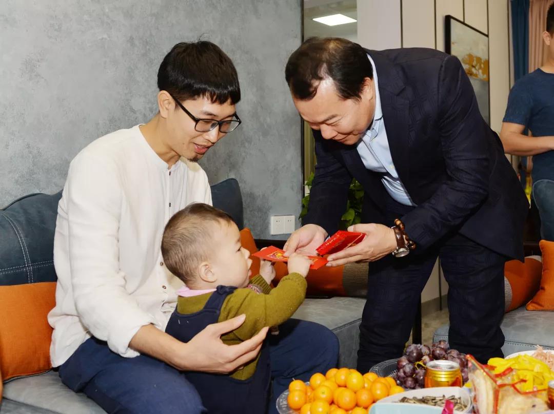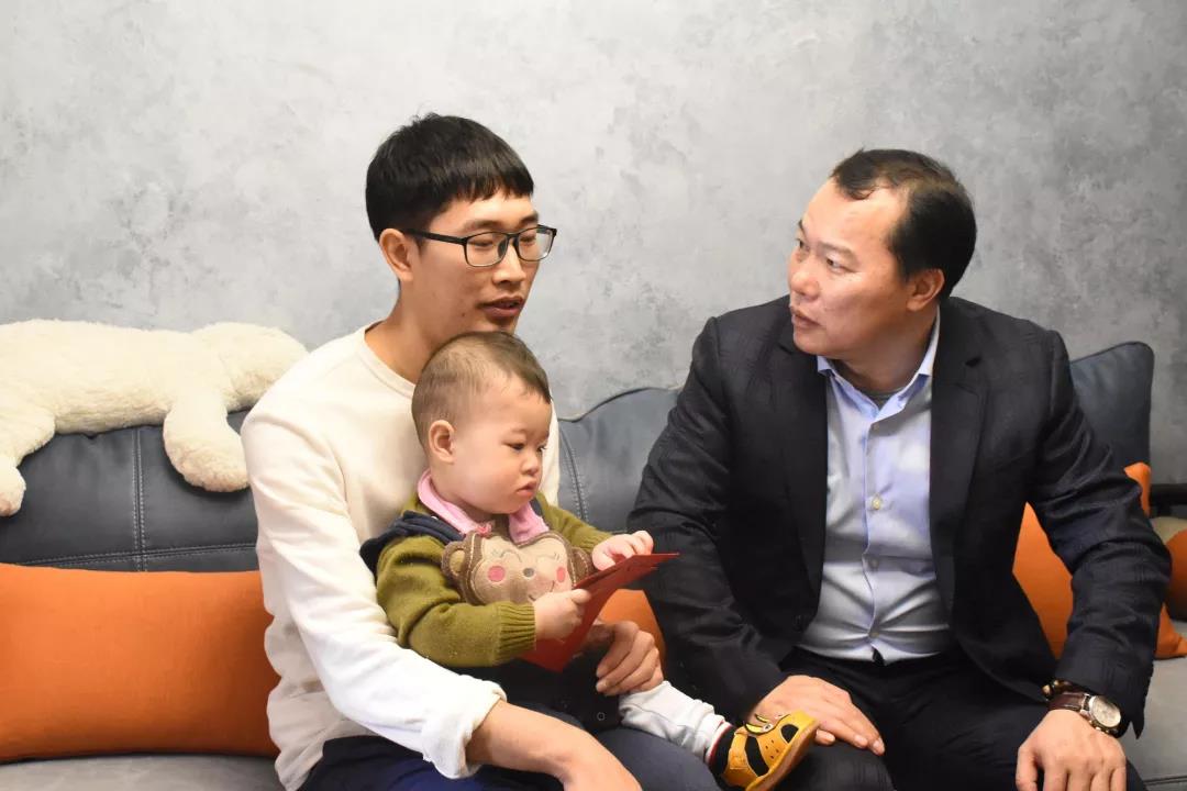 李兴畅一行人首先来到公司设计部副总监黄定业家中,大家受到了黄定业及其家人的热情接待,互相拜年、互相寒暄。80后的黄定业是广东湛江人在大学实习期加入太兴,从一名实习设计员到如今的设计部副总监,晋升线路可谓“稳扎稳打”,我们看到的是他脚踏实地的坚持。2016年黄定业在沙溪华发四季买下第一套房子作为婚房,与家人一起成为“新”中山人。
