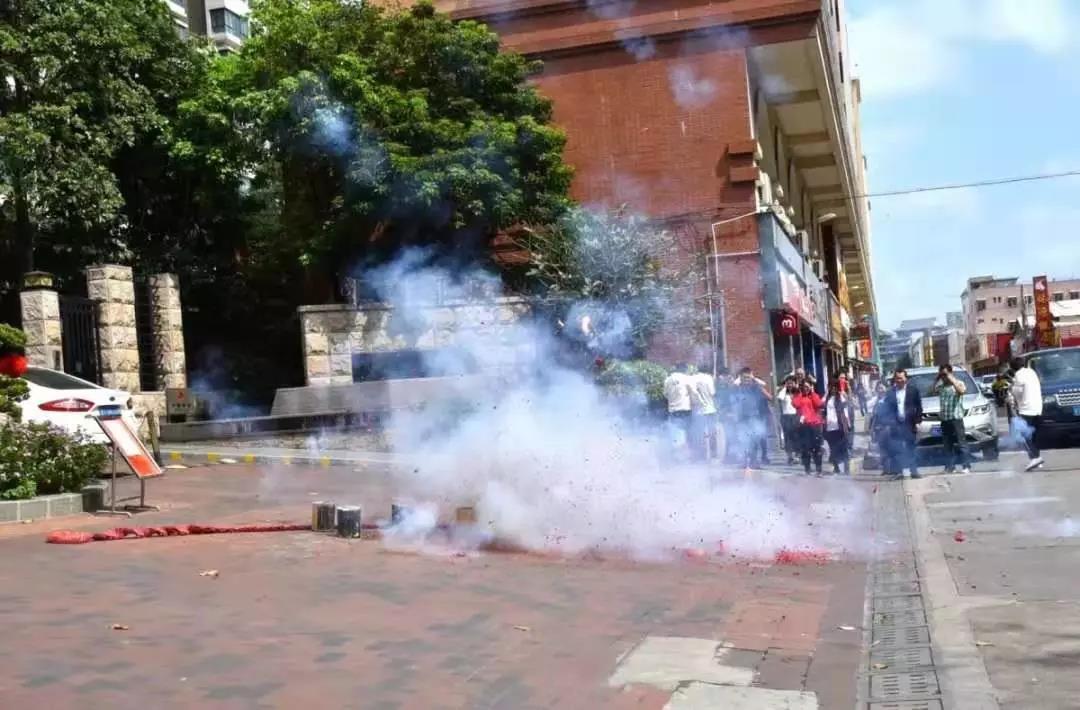 匡传良在小区门口放鞭炮欢迎探访团的到来