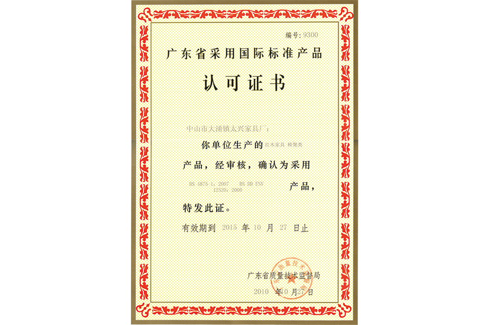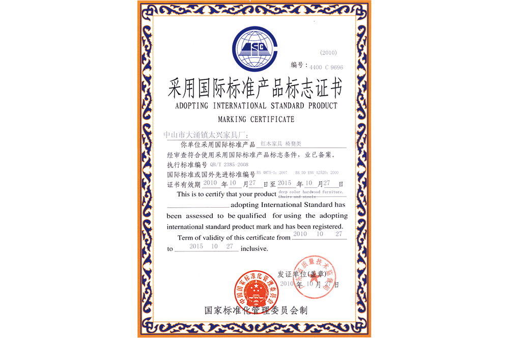 采用国际标准标志证书